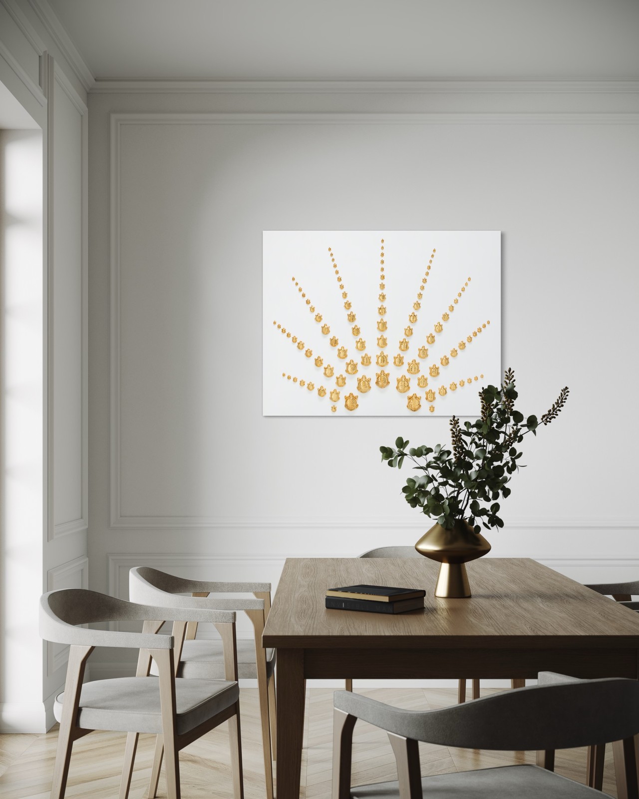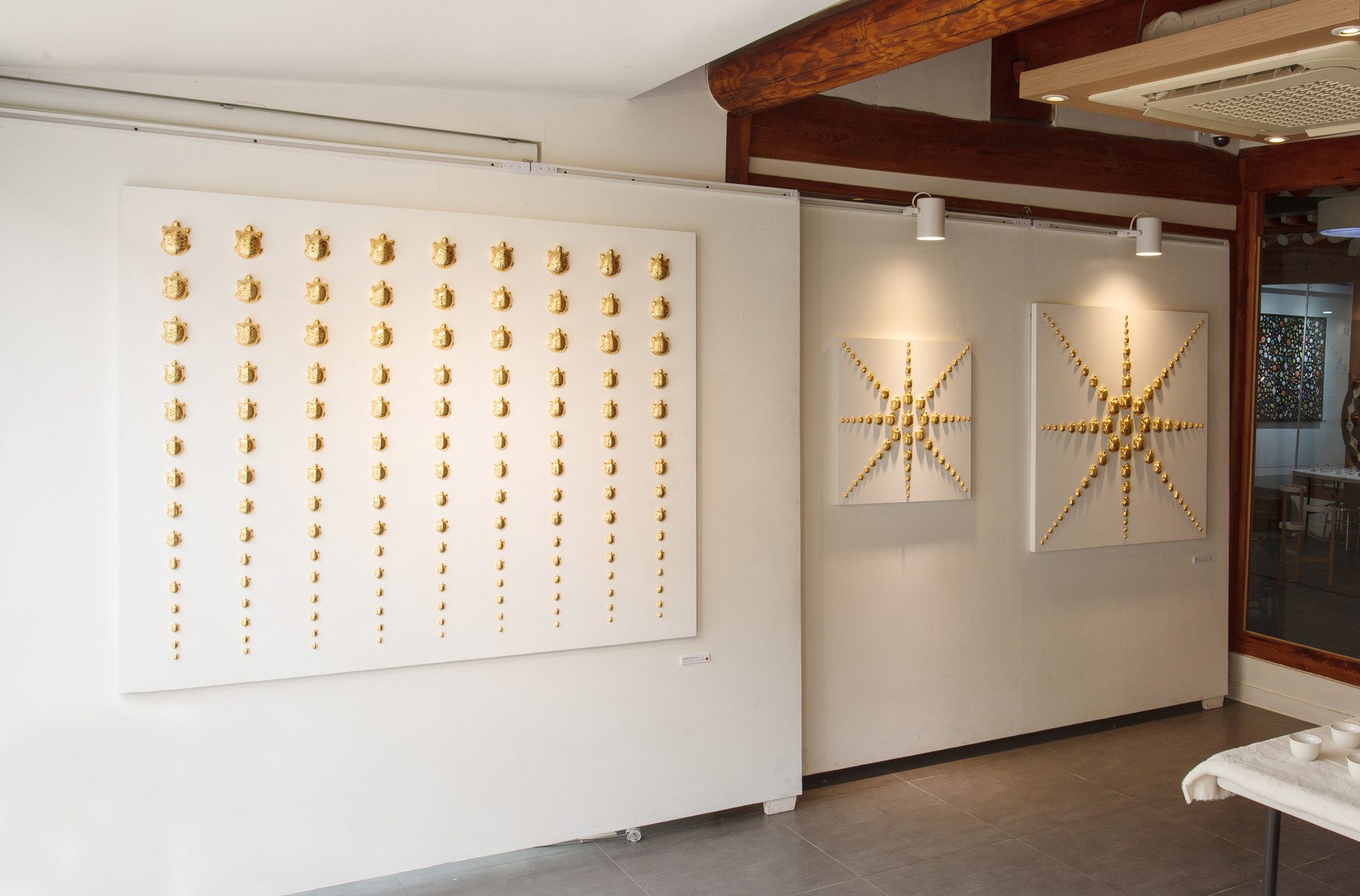 Ceramic, 24k gold on wood. 100x100cm