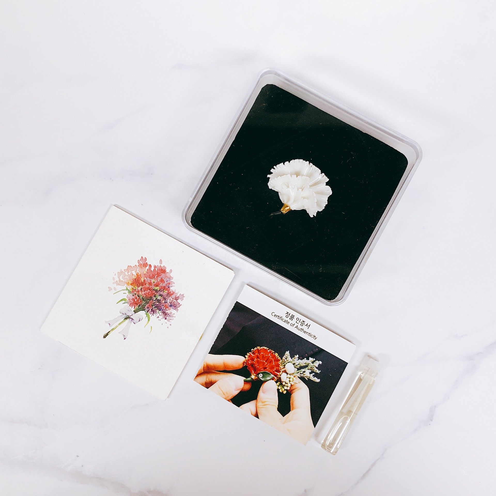 꽃잎 하나하나 접어서 제작해 공장에서 찍어내는 상품들과는 차원이 다른 매력을 지니고 있습니다. 그동안 쌓아온 노하우를 통하여 무게를 최대한 가볍게 제작하였으며 약 6~15g으로 여러분이 상상하는 그 이상으로 가볍습니다.