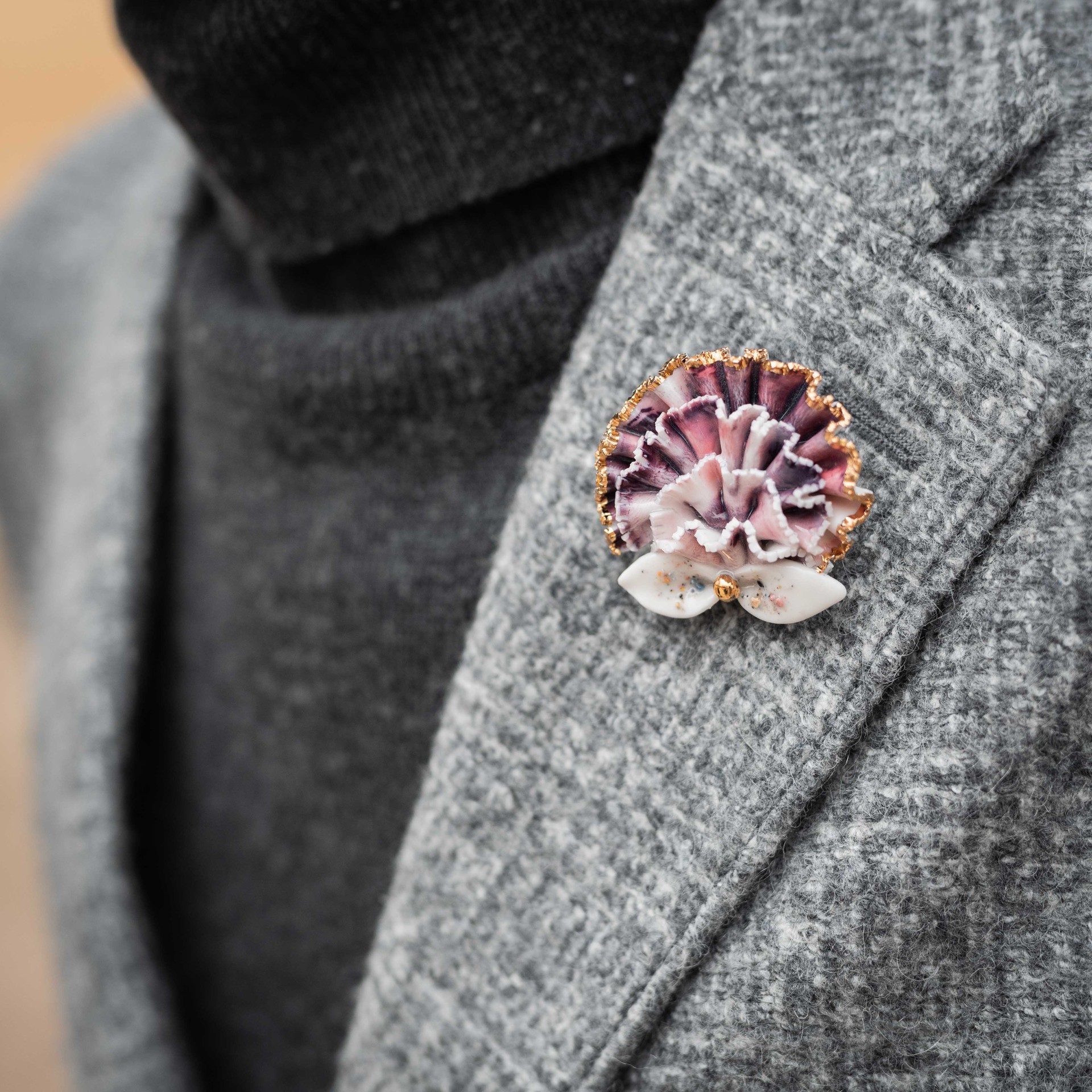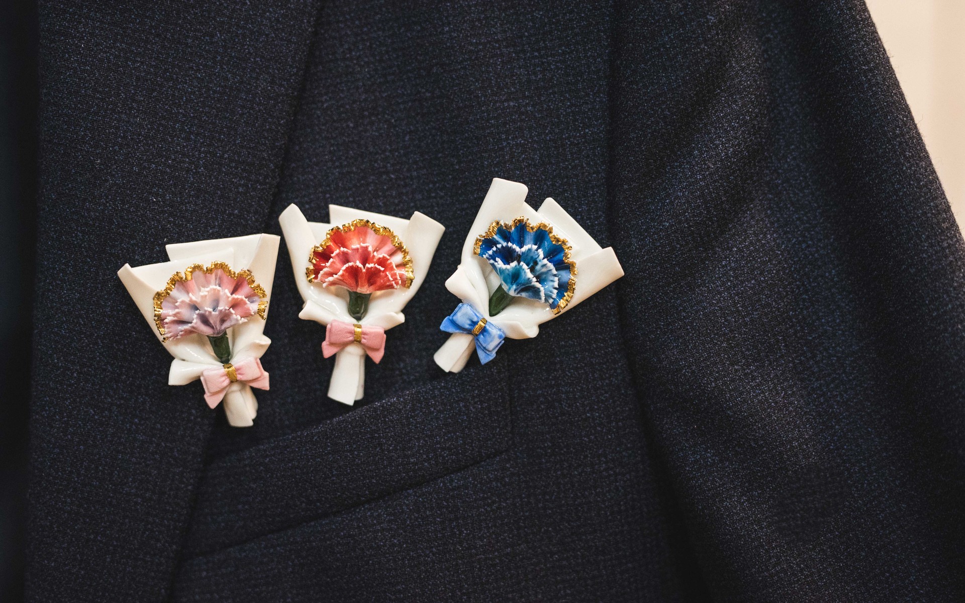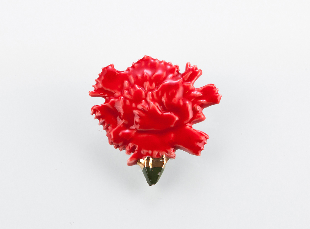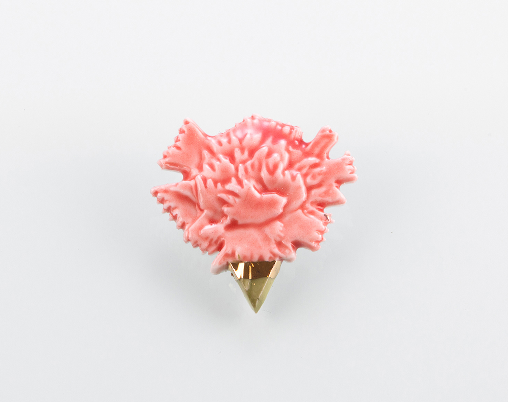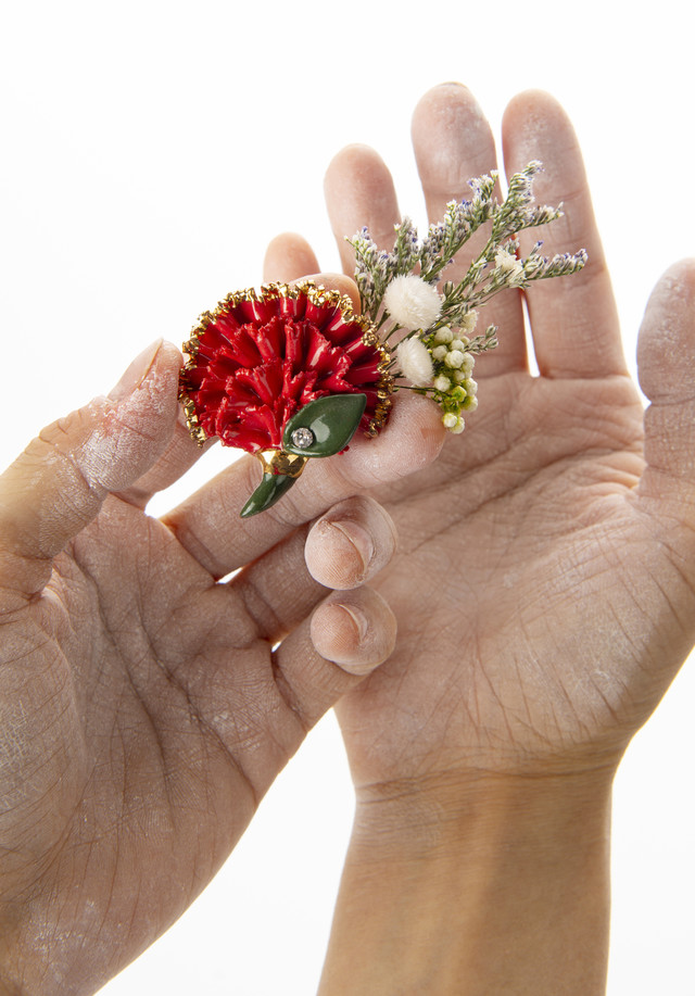 행운브로치는 감사 브로치보다도 더 심플하고 단조로운 디자인입니다. 다른 디자인들과는 달리 꽃잎을 접어서 제작한 방식이 아니라 납작한 편입니다. 활짝 피어있는 카네이션을 부조로 표현해보았습니다.