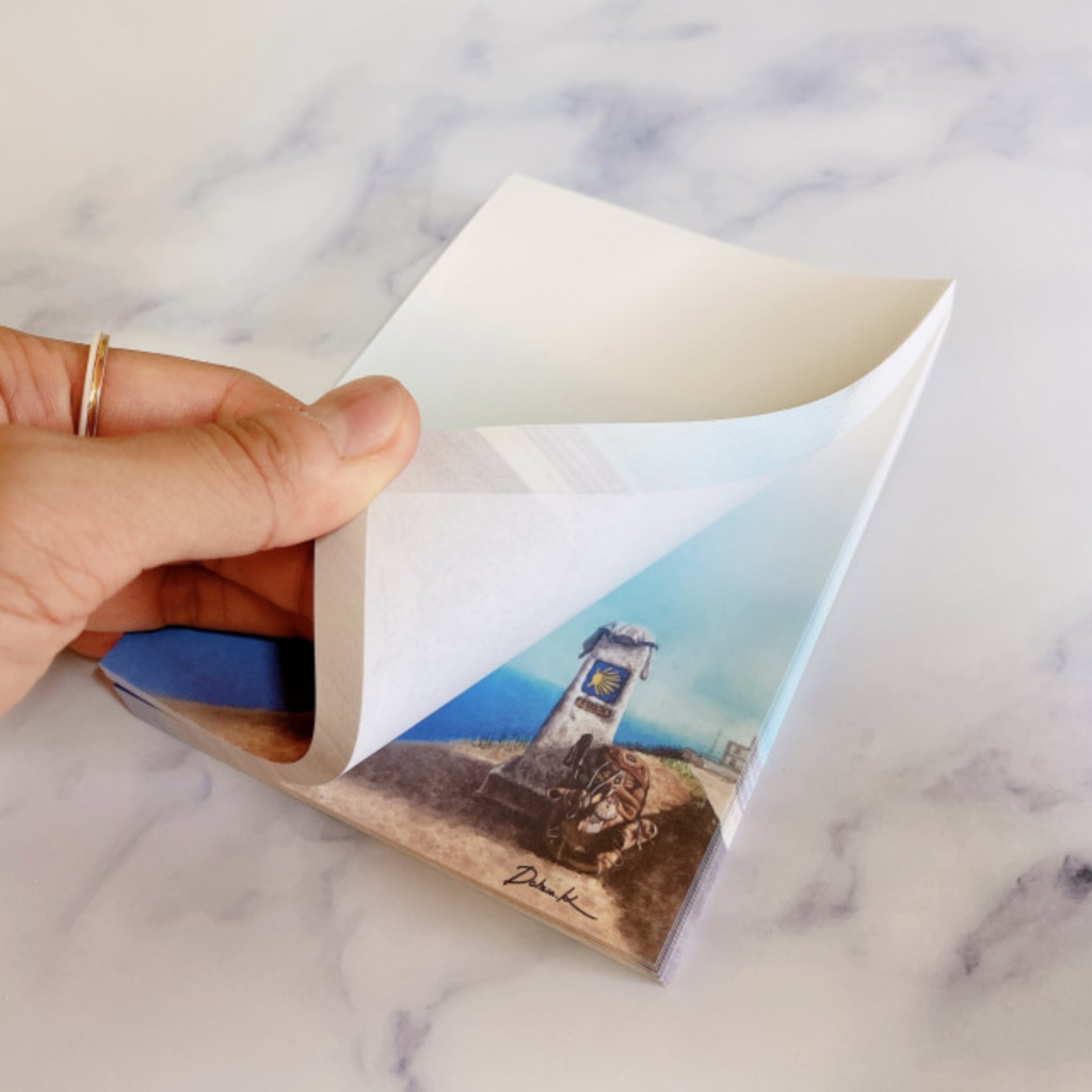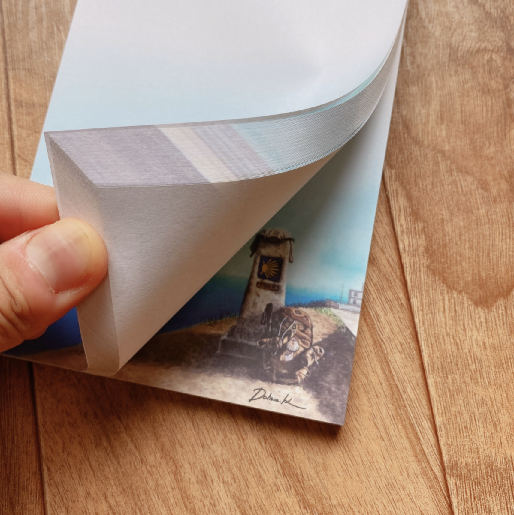 도화 김소영 작가의 산티아고 순례길 떡메모지는 도화 김소영 작가가 직접 산티아고 순례길을 걸으며 느낀 감동과 영감을 아름다운 그림으로 표현한 작품입니다. 각 떡메모지에는 작가의 독창적인 그림이 새겨져 있어, 일상의 노트에도 순례의 평화를 담아낼 수 있습니다.
