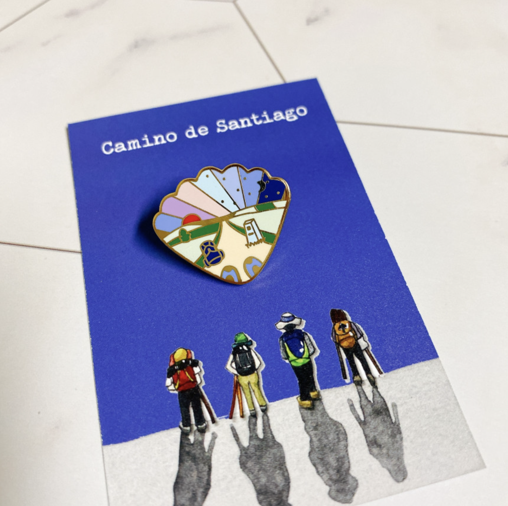 - 독창적인 디자인: 산티아고 순례길의 상징인 조개껍데기 문양 안에 작가가 직접 2018년 11월에 디자인한 그림을 담았습니다.