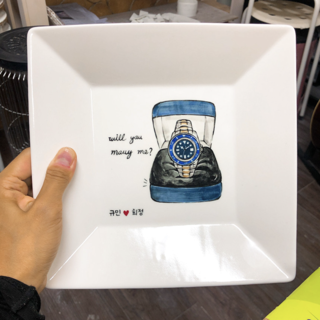 '프로포즈 이벤트 도자기 접시 주문제작'의 특징: