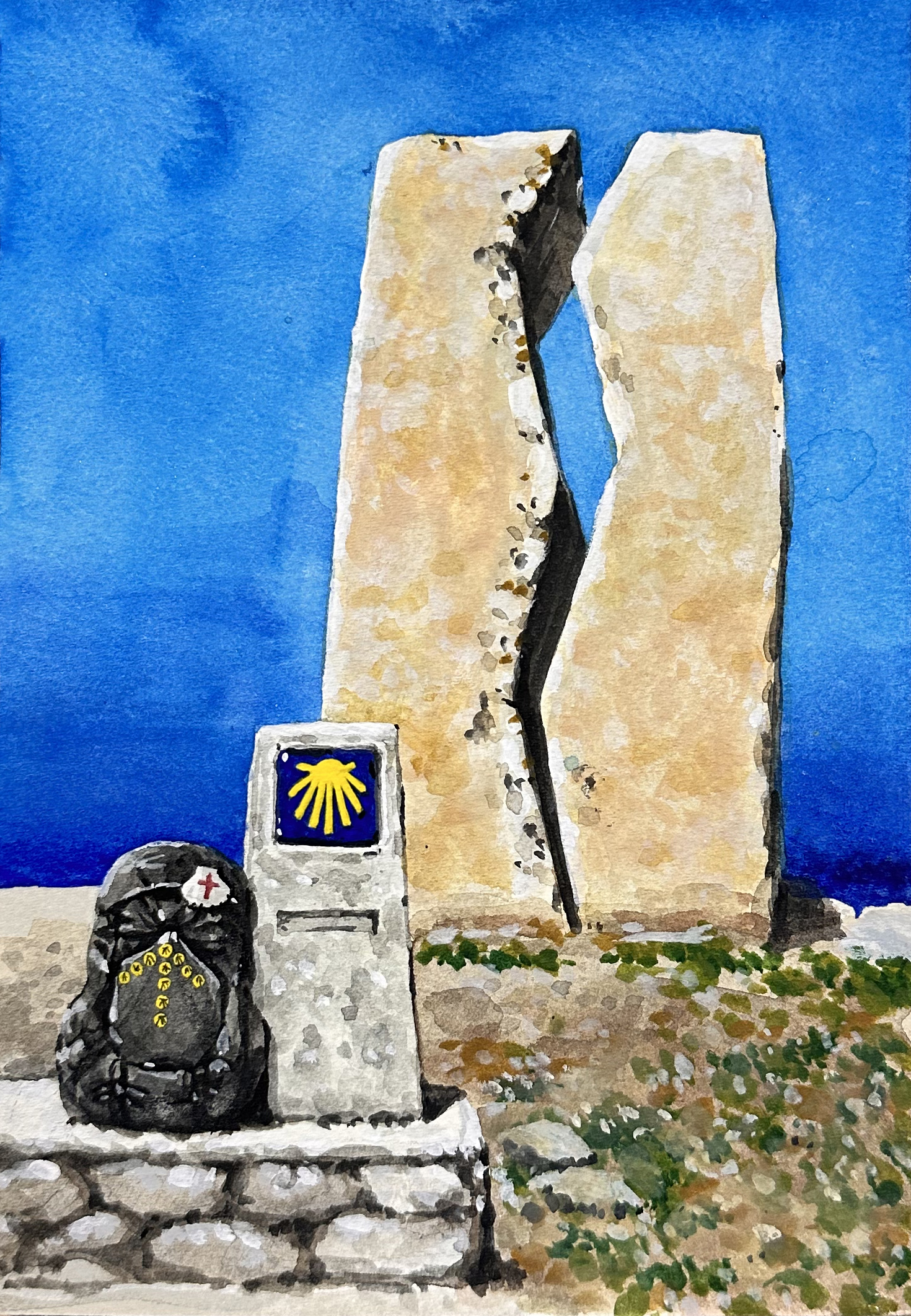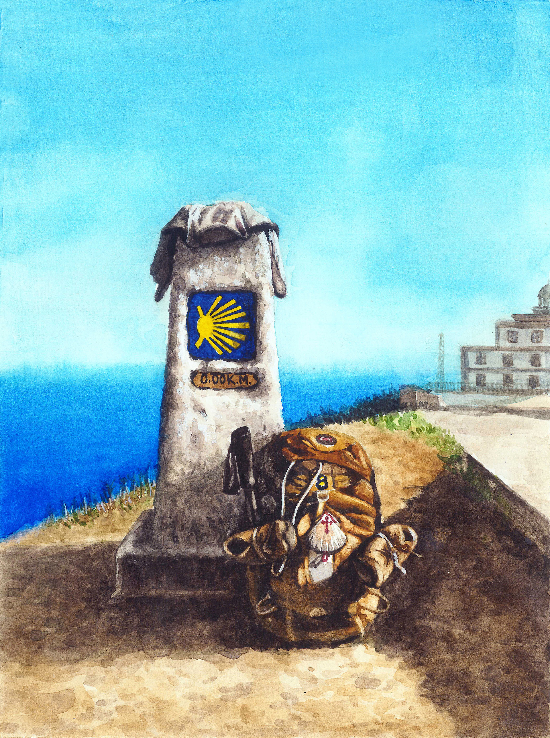 1 _ Fisterra with my backpackAcrylic and watercolor on paper. 24cm x 18cm