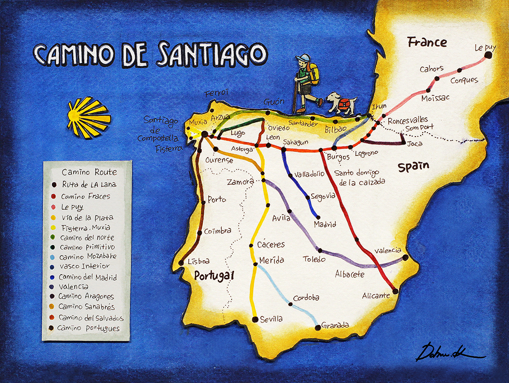 2 _ Camino Fisterra y Muxia MapAcrylic and watercolor on paper. 18cm x 24cm