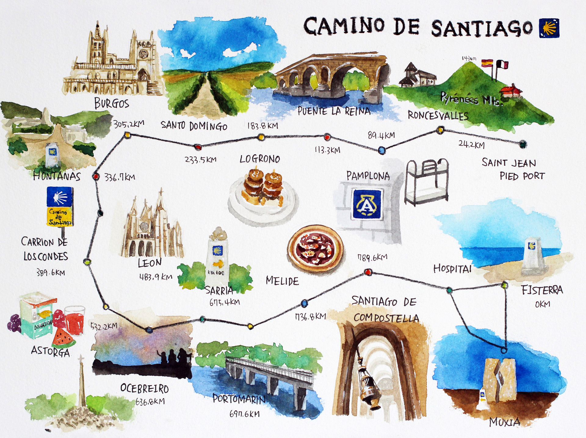 1 _ Camino MapAcrylic and watercolor on paper. 18cm x 24cm