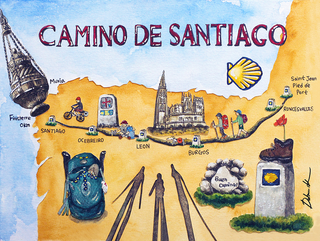 22 _ BUEN CAMINO!Acrylic and watercolor on paper. 15cm x 10.4cm