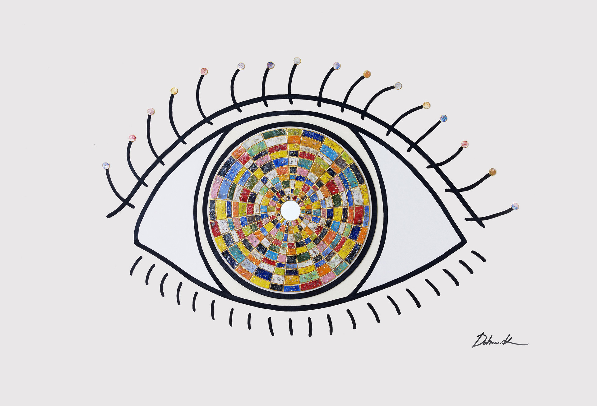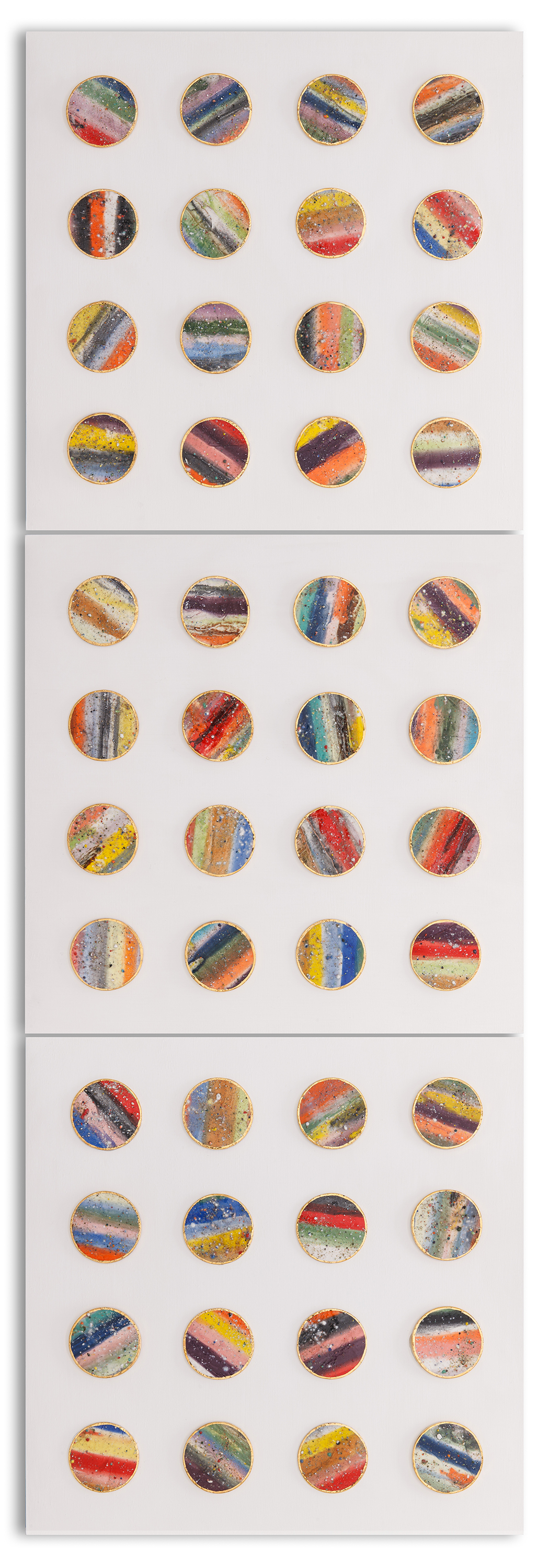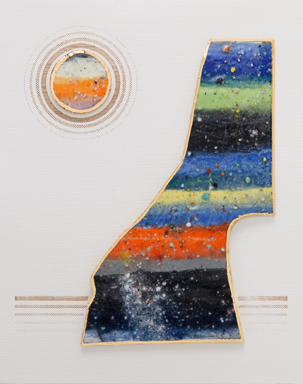 ceramic, 24k gold, swarovski on wood | 22x22cm