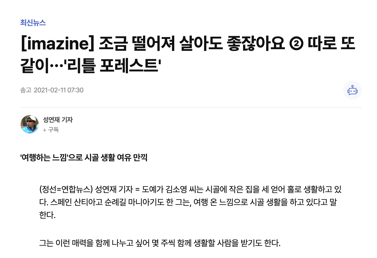 [Yonhap News Agency] It's Okay to Live a Little Apart ② Separate Yet Together… 'Little Forest'