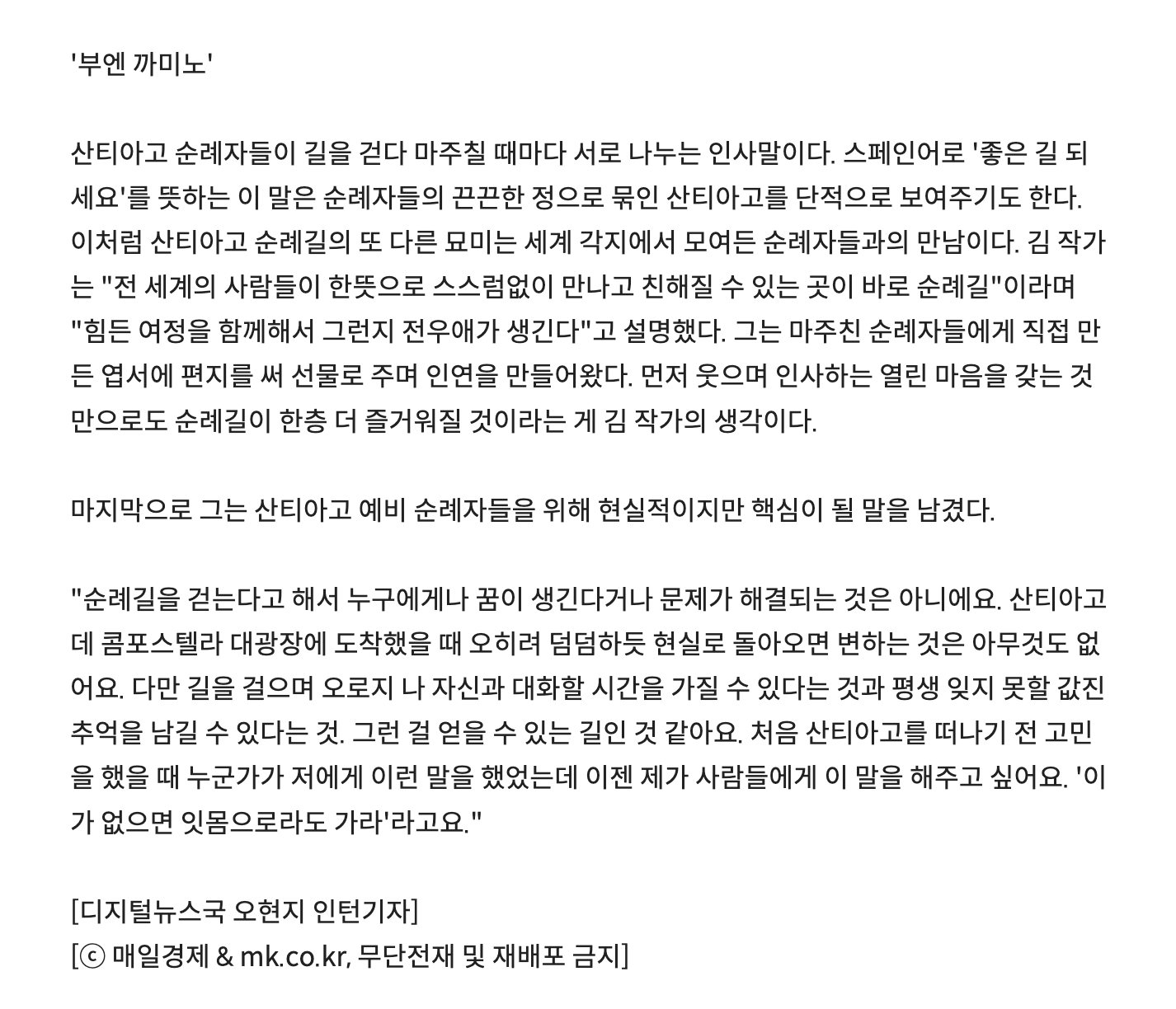 [매일경제] 산티아고 순례길만 4번…"이가 없으면 잇몸으로라도 가라"