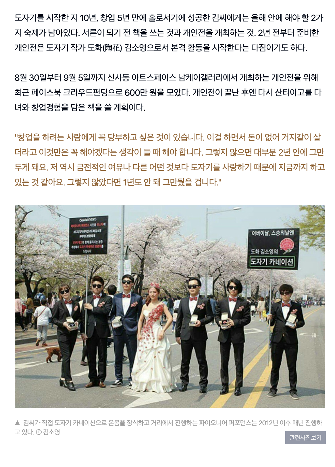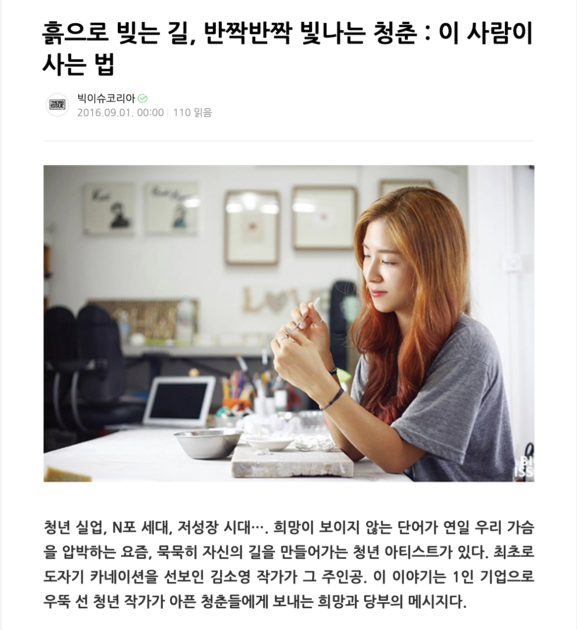 "원래부터 도예가의 꿈을 키웠어요. 대학에서 도예를 전공했지만 정작 졸업하고는 다른 일을 했죠. 2010년에 쇼핑몰에 입사해서 1년 정도 옷 파는 일을 했는데 계속 도자기가 생각나서 결심을 했죠. '다시 도자기를 만들자'고요."