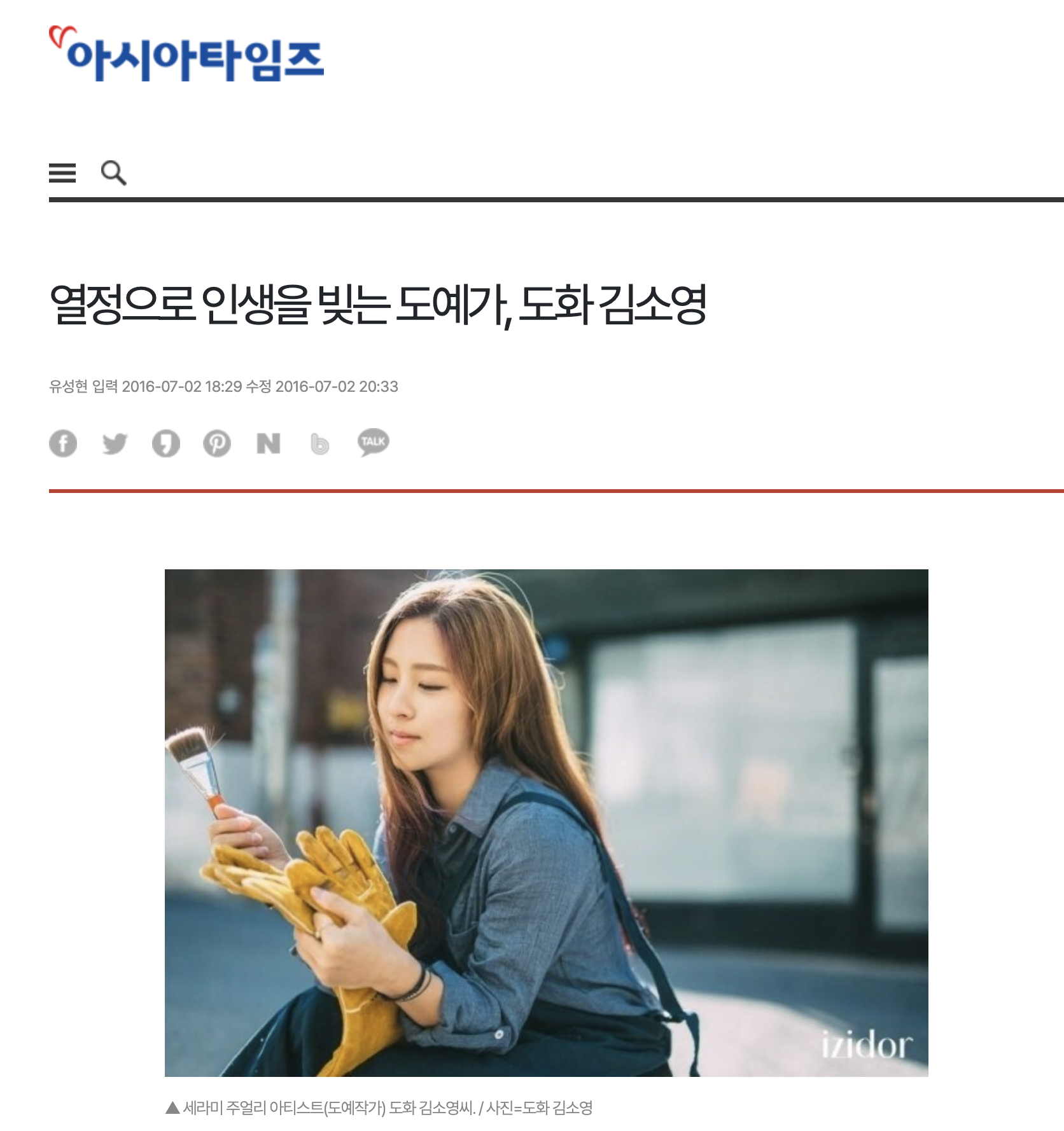 [아시아타임즈] 열정으로 인생을 빚는 도예가, 도화 김소영