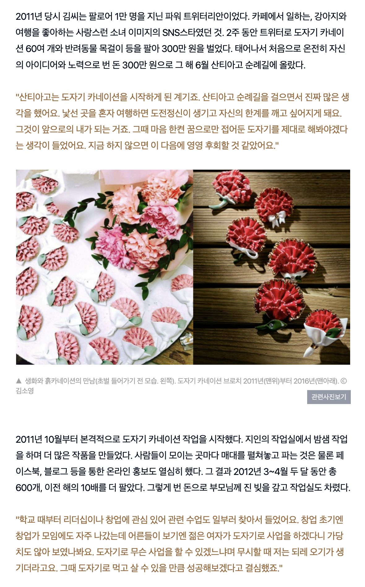 도자기 카네이션이라는 그만의 정체성을 구축했고 어엿한 중견 창업가로 넘어가는 시점에서 되돌아본 지난 시간은 어땠을까? 창업 후 힘들었던 점과 공예가로서 겪었던 어려움을 영상에 담았다.