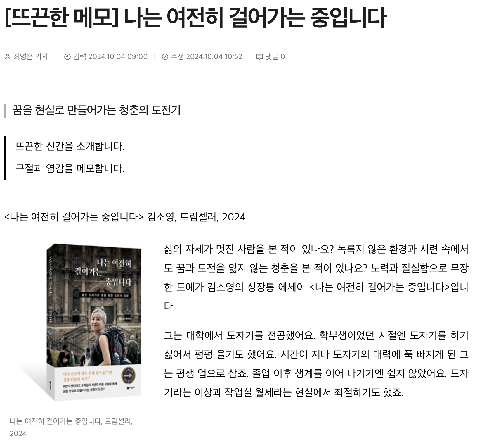Let me introduce a hot new book: "I Am Still Walking" by Kim So-young, Dream Seller, 2024